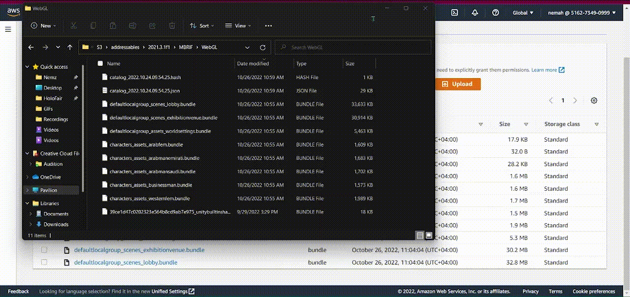 8\) Now, the most important output of this process is **WebGL catalog json file of the addressable.** This file is located in *AWS Console -> S3 -> Your public bucket -> Addressables -> 2021.3.1f1 ->Your product name that you specified in Unity3D Player Settings -> WebGL -> catalog\_yyyy.mm.dd.hh.mm.ss.json.*&#x20;